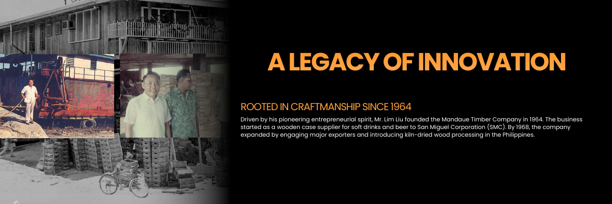 Driven by his pioneering entrepreneurial spirit, Mr. Lim Liu founded the Mandaue Timber Company in 1964. The business started as a wooden case supplier for soft drinks and beer to San Miguel Corporation (SMC). By 1968, the company expanded by engaging major exporters and introducing kiln-dried wood processing in the Philippines.