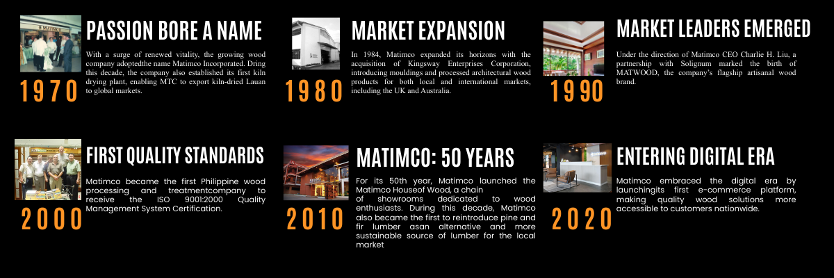 For its 50th year, Matimco launched the Matimco Houseof Wood, a chain of showrooms dedicated to wood enthusiasts. During this decade, Matimco also became the first to reintroduce pine and fir lumber asan alternative and more sustainable source of lumber for the local market
